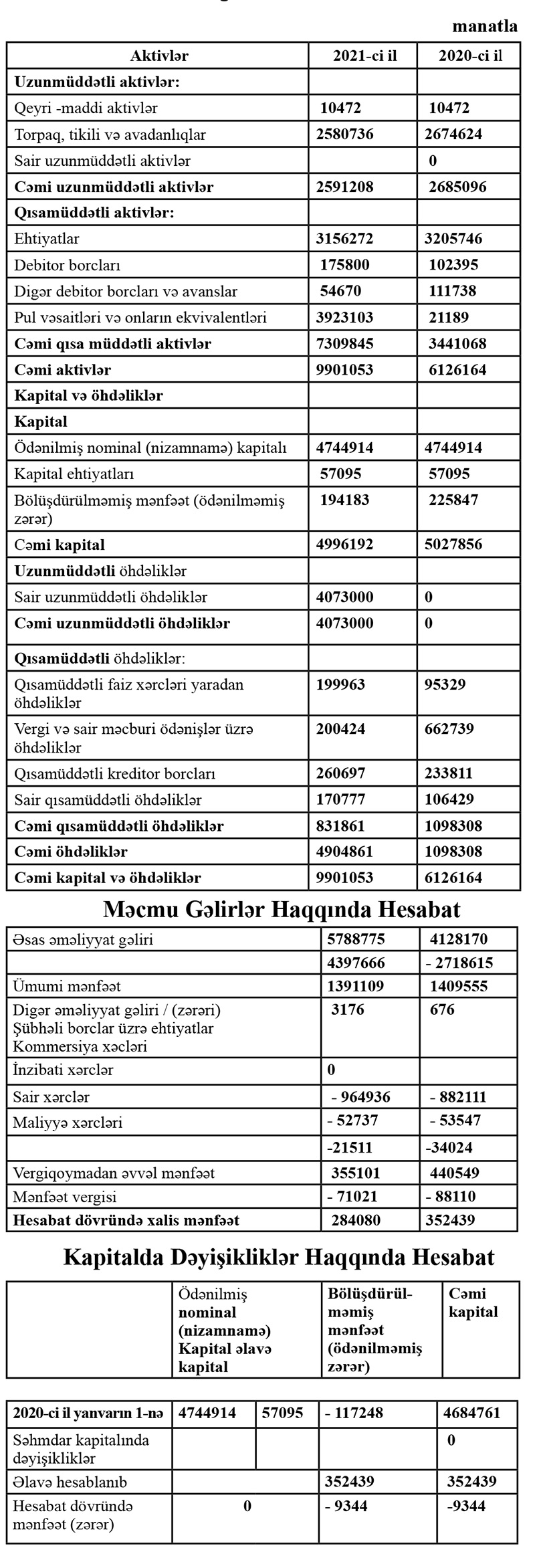 Marja xəbər verir ki, 2020-ci ildə zavodun əsas əməliyyat gəlirləri 4 milyon 128 min 170 manat ikən, 2021-ci ildə 5 milyon 788 min 775 manata yüksəlib.