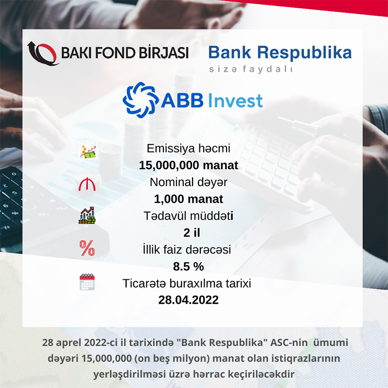 Birjadan Marja-ya daxil olmuş məlumata görə, 28 aprel 2022-ci il tarixində "Bank Respublika" ASC-nin istiqrazlarının yerləşdirilməsi Bakı Fond Birjasında rəqabətli hərrac üsulu ilə həyata keçiriləcəkdir.