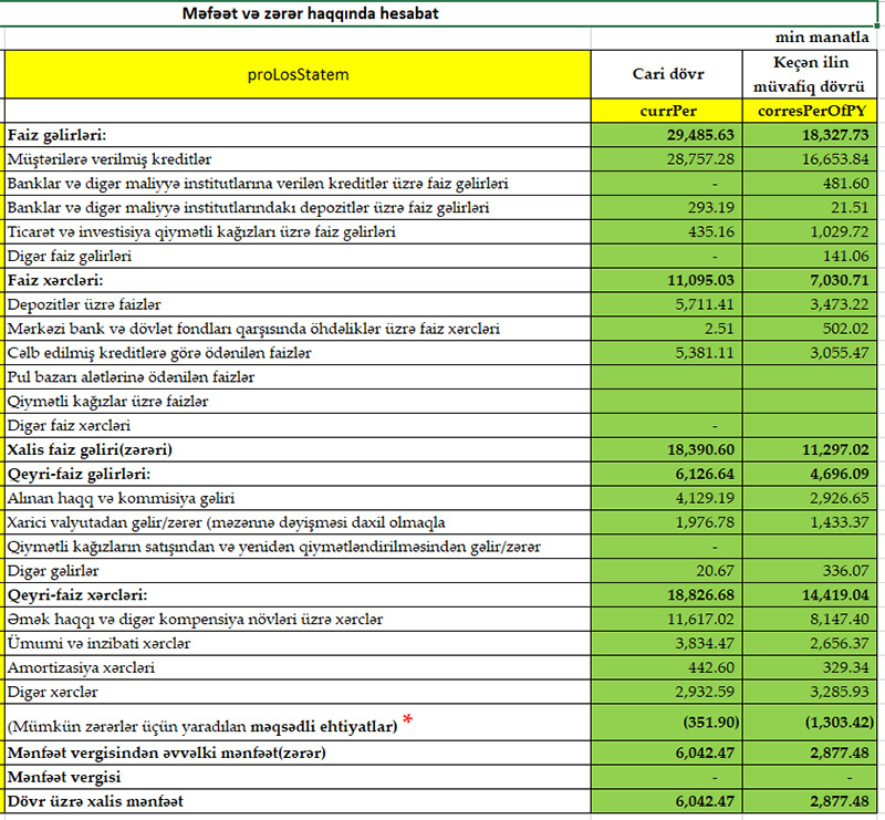 “2021-ci ilin birinci rübü illə müqayisədə 2022-ci ilin 1-ci rübündə Bankın xalis faiz mənfəəti 62% artaraq 18,4 milyon manata, xalis əməliyyat mənfəəti 3 dəfə artaraq 5,7 milyon manata, xalis mənfəəti isə 6,04 milyon manata çatıb ki, bu da ötən ilin müvafiq dövrü ilə müqayisədə 2 dəfədən çoxdur.