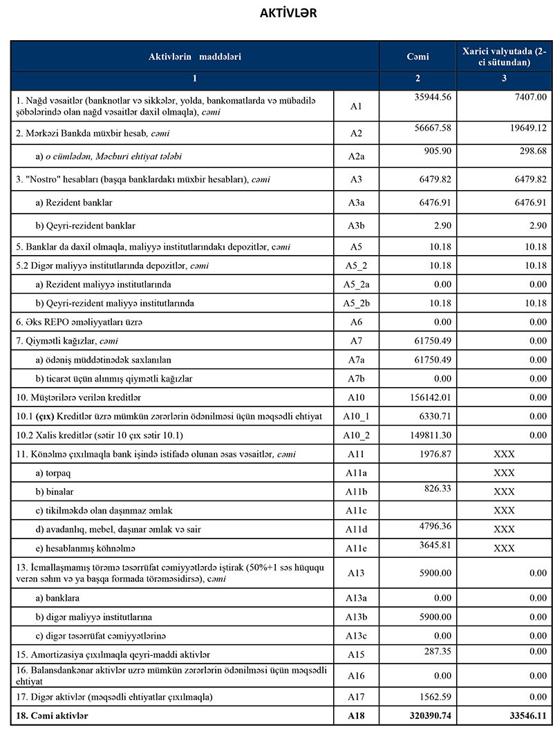 Bankın cəmi aktivləri isə ötən ilin sonundakı 343 milyon 757 min manatdan 320 milyon 390.1 min manata geriləyib.