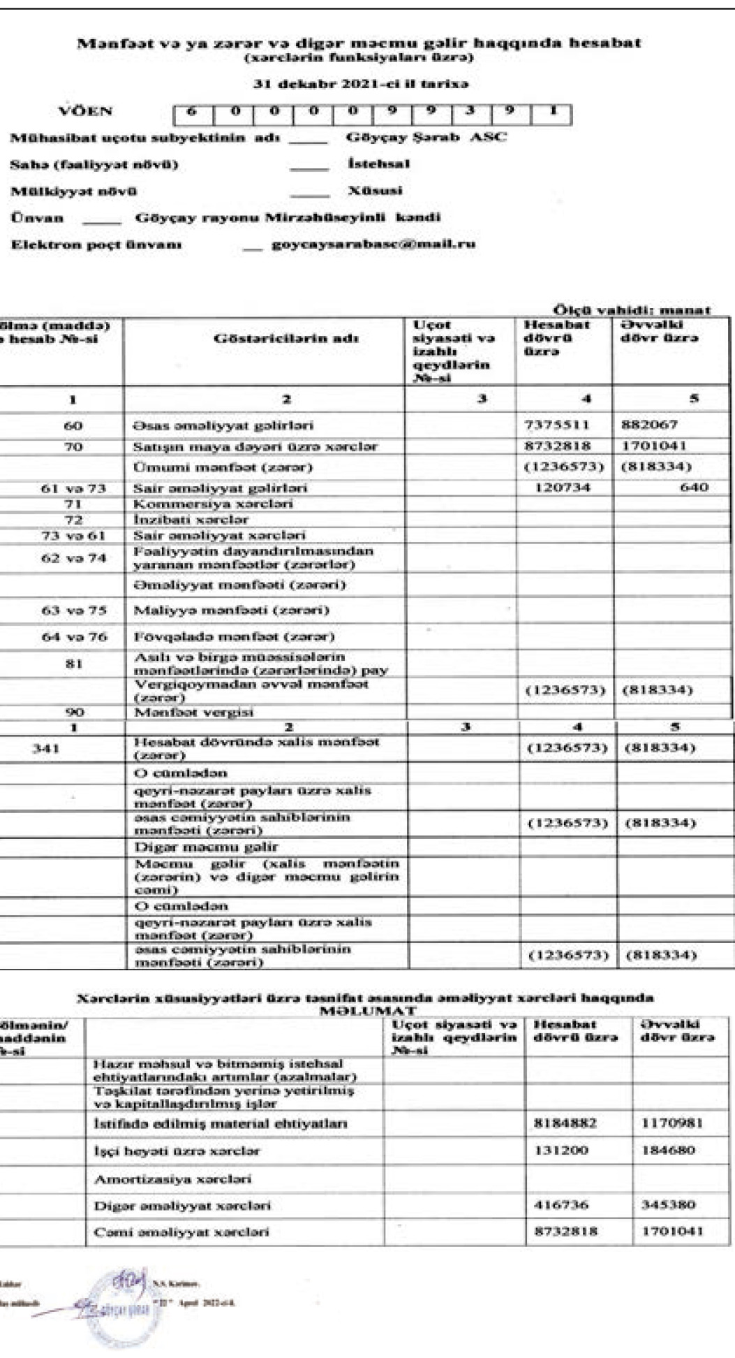 Marja.az xəbər verir ki, "Göyçay Şərab"ın satışdan gəlirləri 2020-ci ildə 882 min manat ikən, 2021-ci ildə 7 milyon 375 min manat təşkil edib. Satışın maya dəyəri 8 milyon 733 min manat olduğundan "Göyçay Şərab"ın 1 milyon 237 min manat zərəri yaranıb.