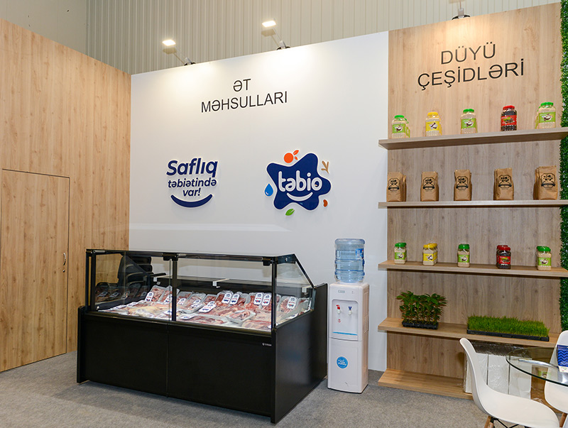 Sərgidə 2022-ci ilin mart ayından etibarən müəssisə qeydə alınmış rəsmi əmtəə nişanı olan “TƏBİO” markası altında emalına başlanmış yüksək keyfiyyətli, biloji saf süd, ət və ət məhsulları, bal nümayiş olunur.