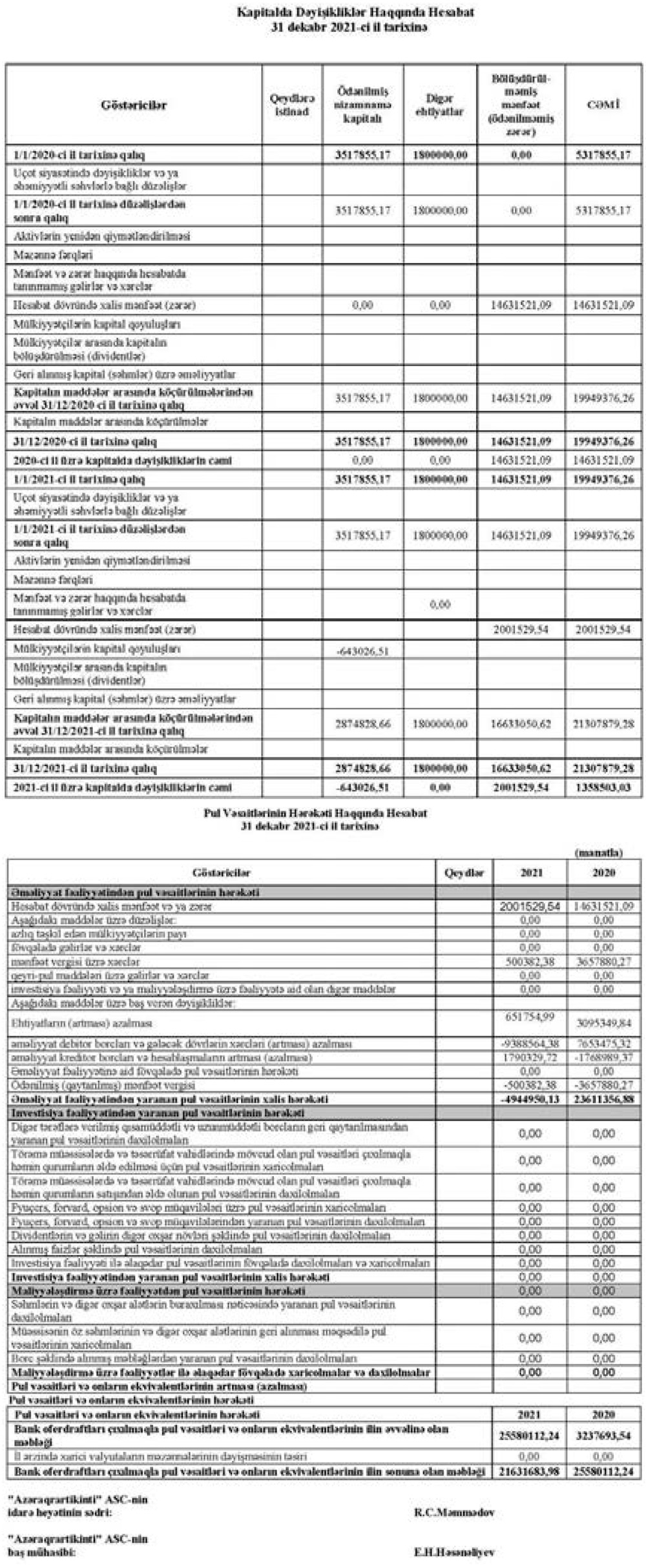 “Azəraqrartikinti” ASC 2021-ci ili 2 milyon manat xalis mənfəət ilə başa vurub. ASC 2020-ci ili 14 milyon 631 min manat xalis mənfəət ilə bağlamışdı. Beləliklə, 2020-ci illə müqayisədə 2021-ci ildə “Azəraqrartikinti”nin xalis mənfəəti 7,3 dəfə azalıb. Xalis mənfəətin azalması gəlirlərin kəskin azalmasından qaynaqlanır.