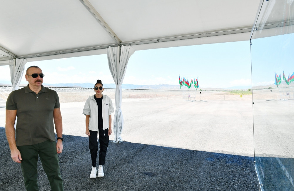 Dövlət başçısı və birinci xanım Horadiz-Ağbənd dəmir yolu xəttinin Cəbrayıl rayonu ərazisində Soltanlı stansiyasının təməlqoyma mərasimində iştirak ediblər.