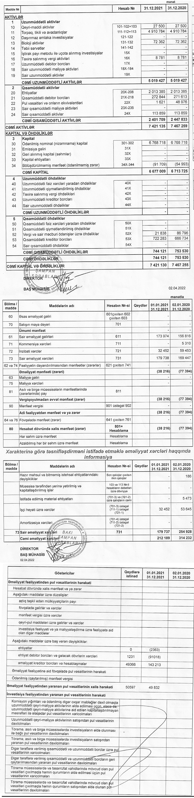 "Bakı Şampan Şərabları" sair əməliyyat gəlirləri 2020-ci ildə 157 min manat ikən, 2021-ci ildə 174 min manat təşkil edib.