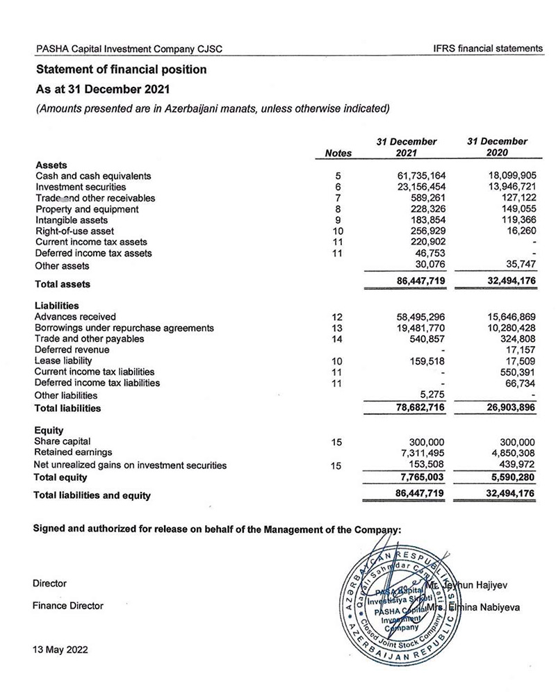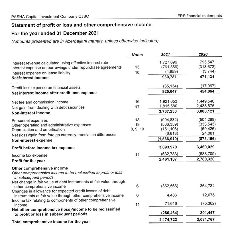 2020-ci ildə "PAŞA Kapital"ın faiz gəlirləri 793 min manat ikən, 2021-ci ildə 1 milyon 727 min manat təşkil edib. Şirkətin komissiya gəlirləri isə 1 milyon 449 min manatdan 1 milyon 921 min manata yüksəlib.