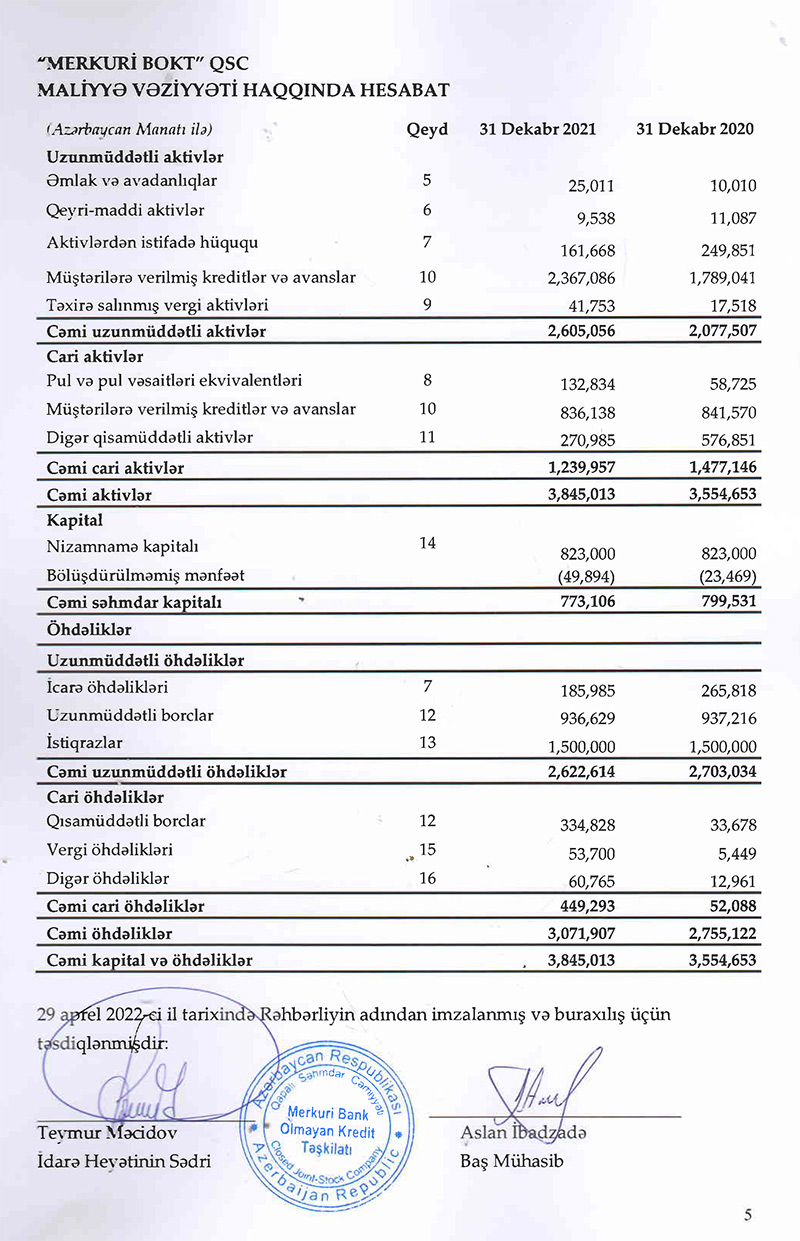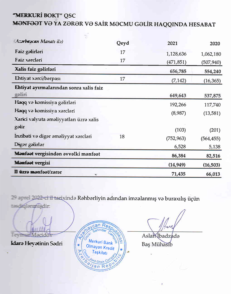 "Merkuri BOKT" QSC 2021-ci ili 71 min 435 manat xalis mənfəət ilə başa vurub. Halbuki, şirkət 2020-ci ili 66 min 13 manat xalis mənfəət ilə bağlamışdı.
