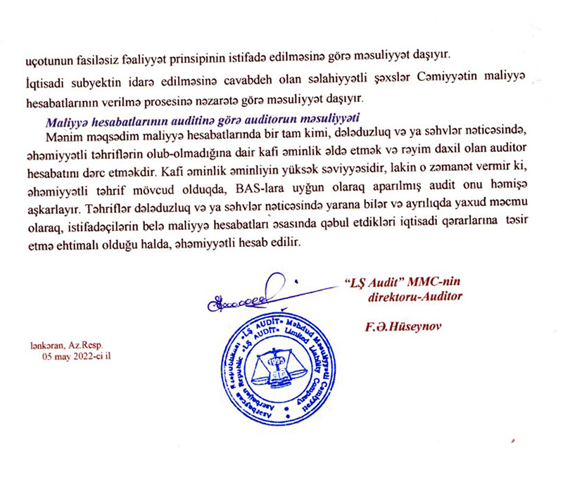 "Hacı Kredit İttifaqı" MMC-nin 31 dekabr 2021-ci il tarixində bitən il üzrə maliyyə hesabatları.