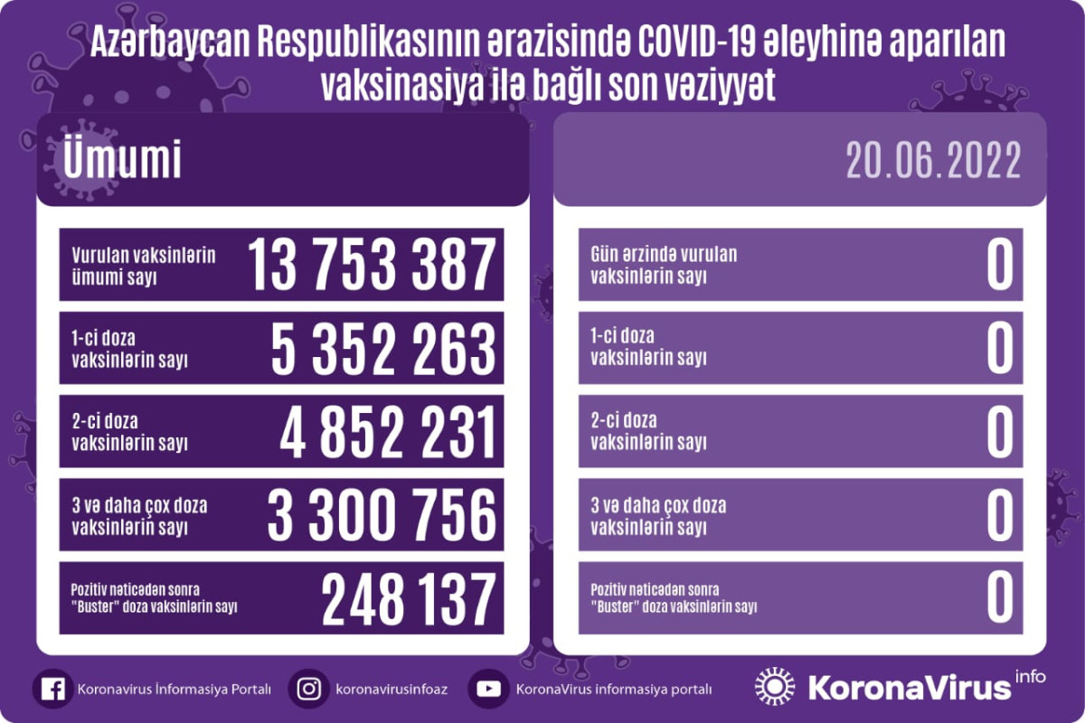 Azərbaycanda son sutkada koronavirus (COVID-19) əleyhinə vaksin vurulmayıb.