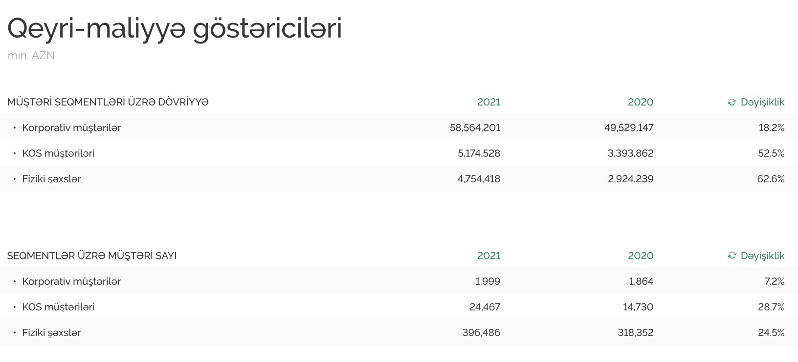 Ötən il "PAŞA Bank"ın korporativ müştərilərinin sayı 135 və ya 7,2% artaraq 1999-a, KOS müştərilərinin sayı 9 min 737 və ya 28.7% artaraq 24 min 467-yə, fiziki şəxs müştərilərin sayı isə 78 min 134 və ya 24.5% artaraq 396 min 486-ya çatıb.