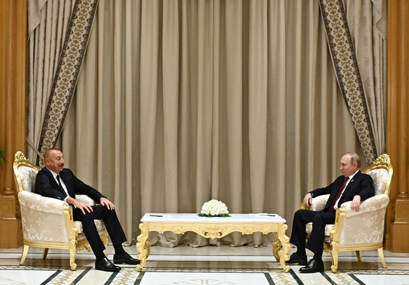 Xəzər Sammiti çərçivəsində Prezident İlham Əliyev ilə görüşməkdən məmnunluğunu ifadə edən Prezident Vladimir Putin dövlətimizin başçısının Rusiyaya səfərini xatırlatdı, ölkələrimiz arasında diplomatik münasibətlərin qurulmasının 30 illiyinin qeyd edilməsinin önəmini bildirdi. Əlaqələrimizin genişləndiyini və hazırkı səviyyəsinin çox yaxşı olduğunu deyən Rusiya dövlətinin başçısı razılaşdırılan bütün məsələlərin icra edildiyini vurğuladı. Prezident Vladimir Putin qeyd etdi ki, ticarət dövriyyəsi artır. Bu artım keçən il 16 faizdən çox, bu ilin üç ayının nəticələrinə görə 5,5 faiz təşkil edib. Beləliklə, ticarət dövriyyəsinin inamlı artımı müşahidə olunur.