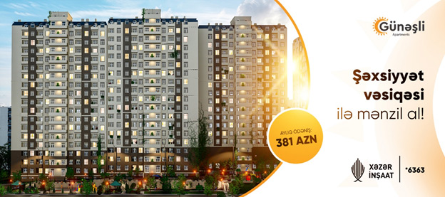 (®) Xəzər İnşaat “Günəşli Apartments” layihəsində arayışsız və zaminsiz ŞƏXSİYYƏT VƏSİQƏSİ ilə AYLIQ 381 AZN-ə tam təmirli, dəniz mənzərəli mənzillər təklif edir!
