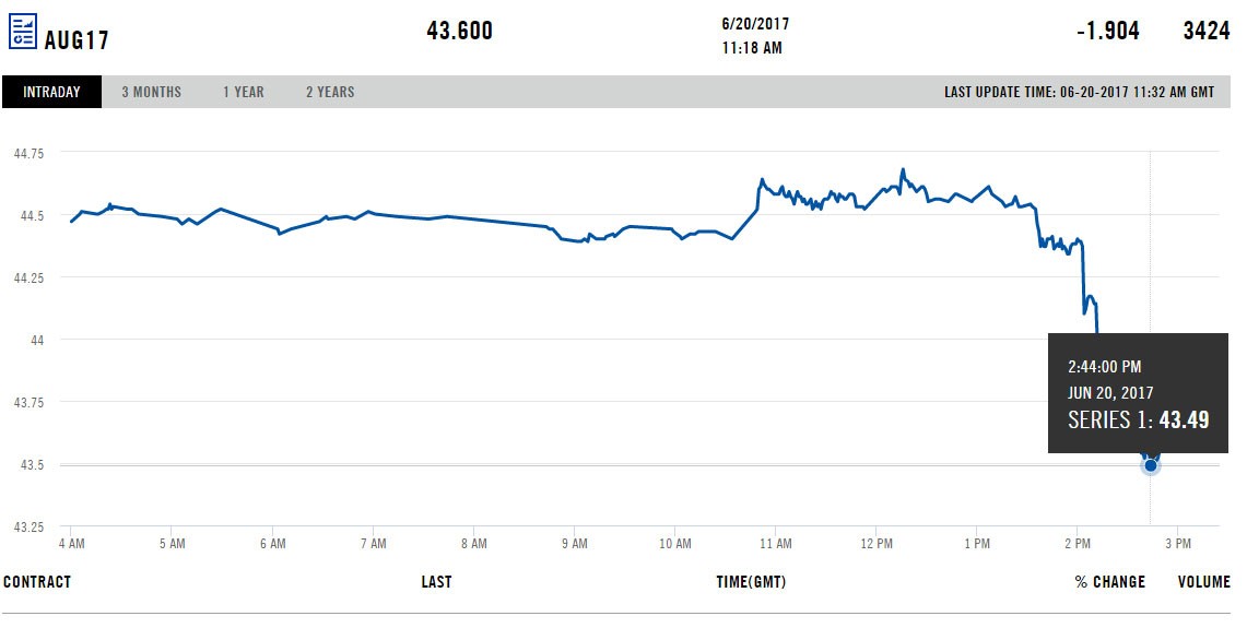 ABŞ xam nefti isə 43,49 dollara düşüb.