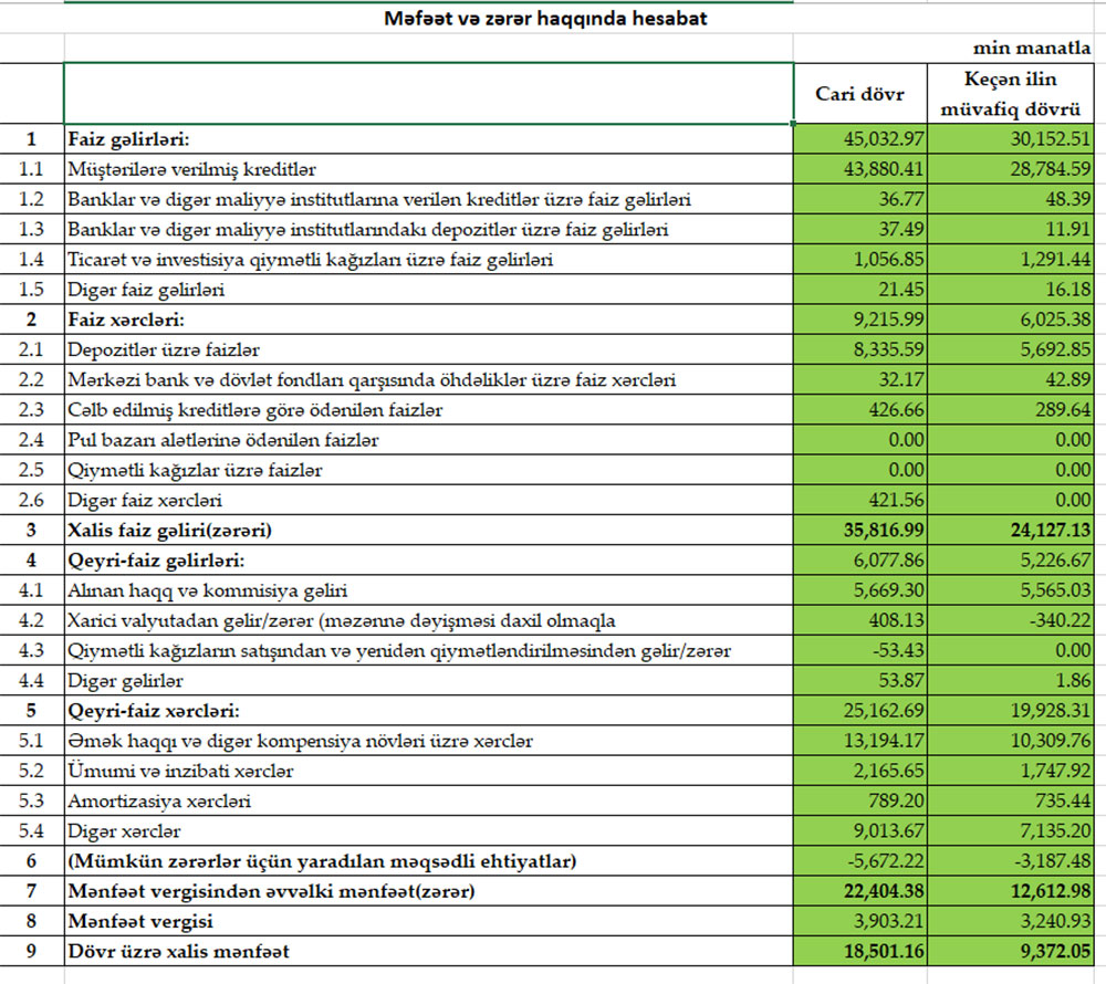 "Bank of Baku"nun depozit portfeli isə 27 milyon 812 min manat və ya 11,2% artarq 274 milyon 989 min manata çatıb.