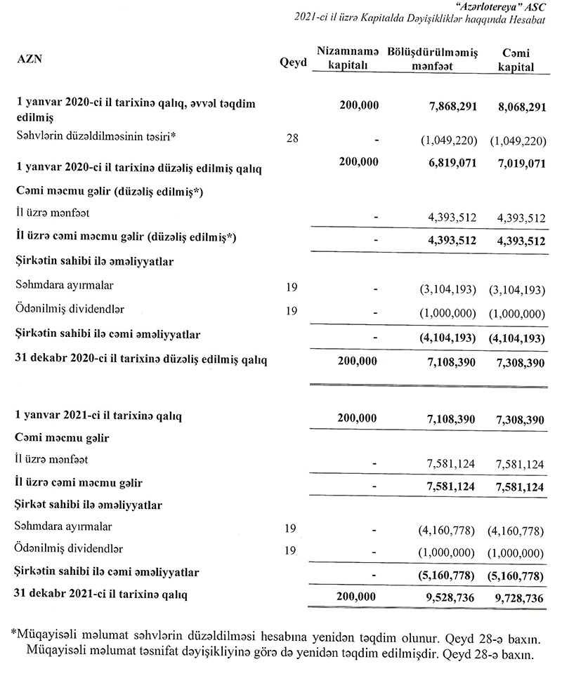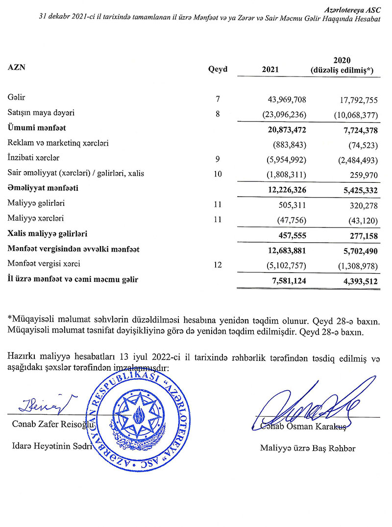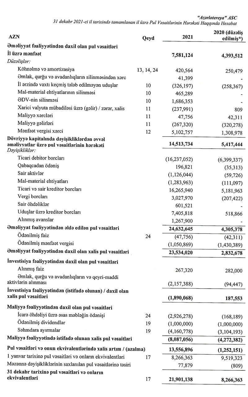 “Azərlotoreya” ASC 2021-ci ili 7 milyon 581 min manat xalis mənfəət ilə başa vurub.