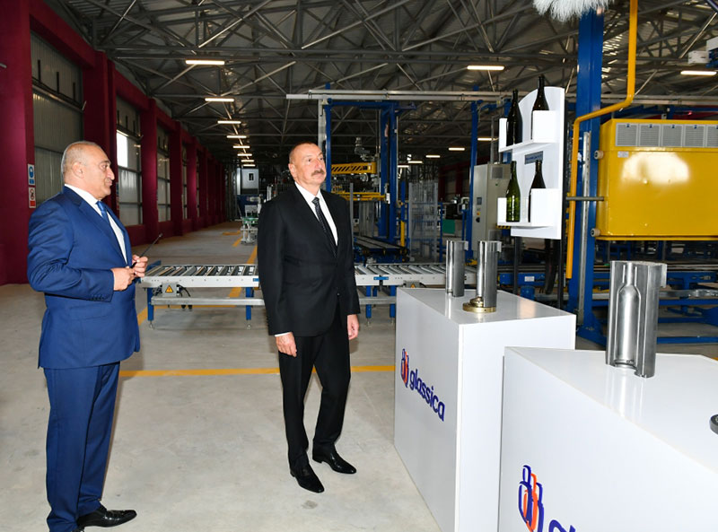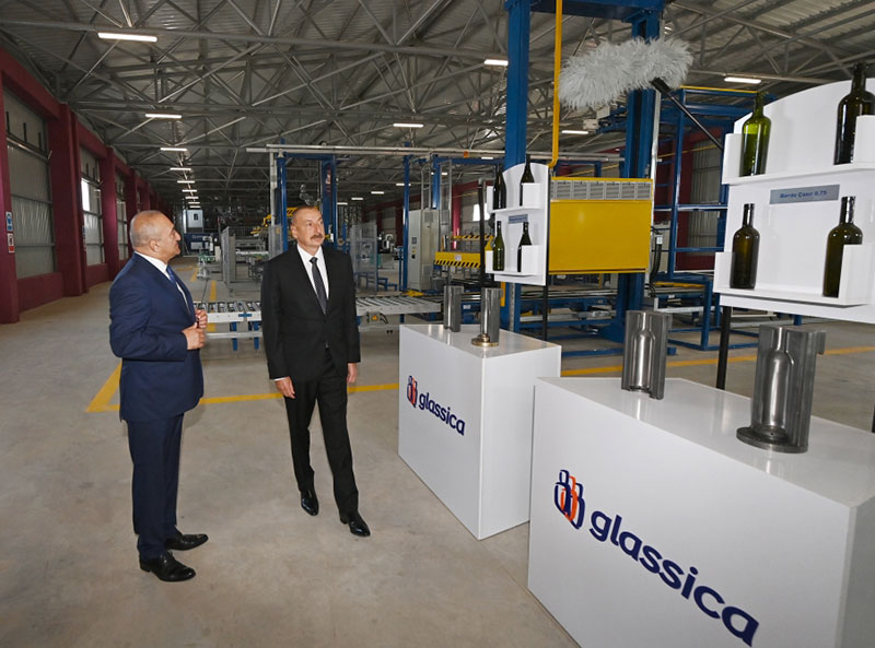 Prezident İlham Əliyev Sumqayıt Kimya Sənaye Parkında “Glassica” Qapalı Səhmdar Cəmiyyətinin şüşə tara məhsullarının istehsalı müəssisəsi ilə tanış olub.