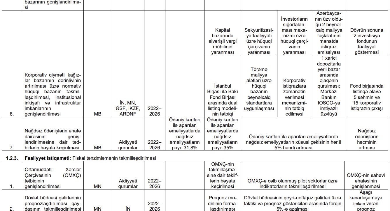 Həmçinin bank sektorunda cəmi aktivlərin həcminin hər il 8%, sığorta bazarının həcminin hər il 10% artırılması hədəflənir.