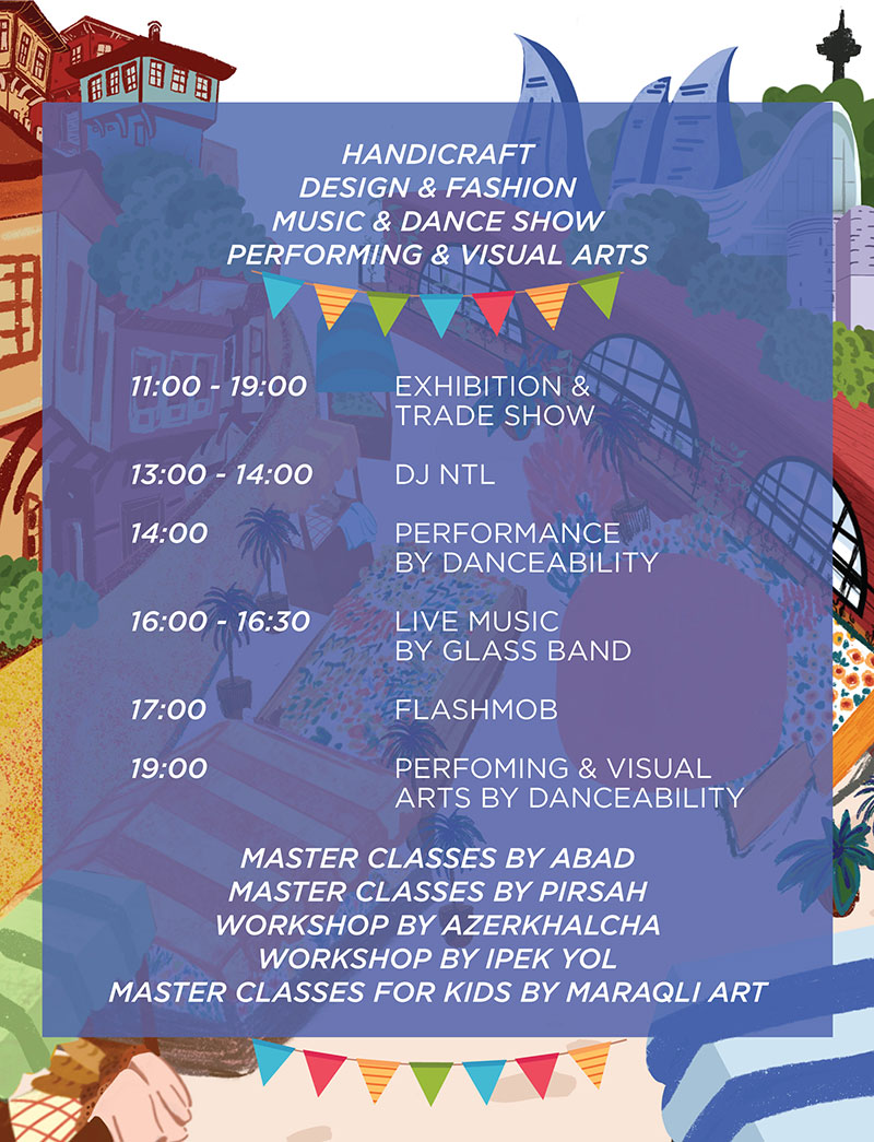 Festivalda iştirak etməklə Siz Bolqarıstan və Azərbaycandan olan yaradıcı biznes nümayəndələri ilə tanış ola və onların əl işləri, dizayn və moda, vizual və səhnə sənəti sahələrindəki məhsullarına nəzər yetirə bilərsiniz.