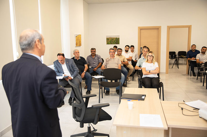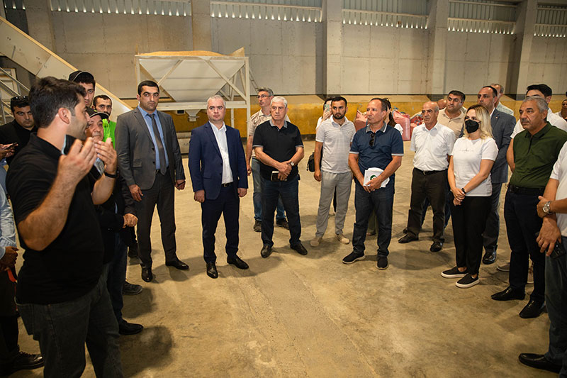 Ümumi gücü 20 t/saat məhsul qəbul edə bilən dərin toxum təmizliyi, ölçüsünə, uzunluğuna, çəkisinə görə çeşidləmə, dərmanlama, toxumun qorunması və mükəmməl cücərməsini tam təmin edən toxum emalı xətti kompleksinin təqdimatı həyata keçirilmiş, emal prosesinin mərhələləri, dərmanlama, qablaşdırma, paketləmə və etiketləmə barədə ətraflı məlumat verilmiş, bütün proseslər və mərhələlər əyani olaraq nümayiş etdirilmiş və iştirakçıların çoxsaylı sualları cavablandırılmışdır.
