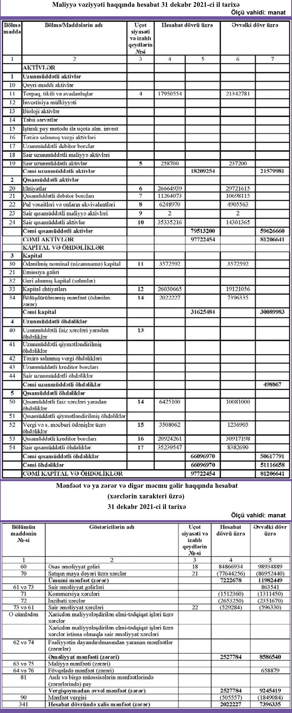 31 dekabr 2021-ci il tarixində GAZ-ın cəmi aktivləri 97 milyon 722 min manat olub ki, bu da illik müqayisədə 20,3 % çoxdur.