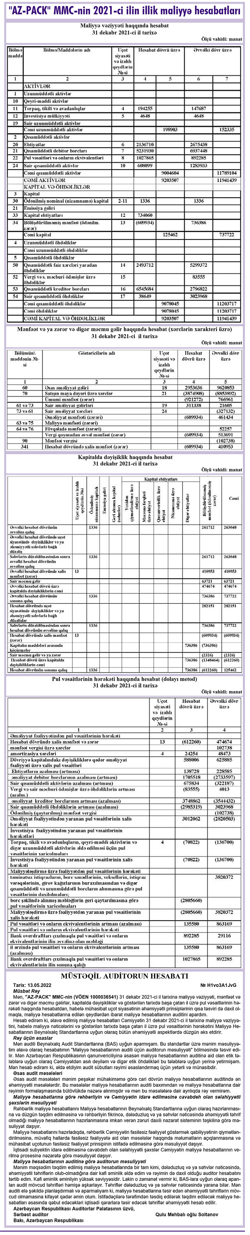 Azərbaycanın qida istehsalçılarını plastik qablaşdırma məhsulları ilə təchiz edən "AZ-PACK" MMC 2021-ci ili 610 min manat xalis zərər ilə başa vurub. Halbuki, şirkət 2020-ci ili 411 min manat xalis mənfəət ilə bağlamışdı.
