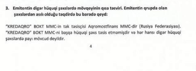 Marja.az xəbər verir ki, bu barədə “Kredaqro”nun istiqraz emissiyası ilə əlaqədar Emissiya Prospektində bildirilir.