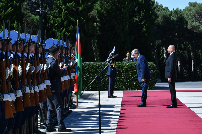 Azərbaycan Respublikasının Prezidenti İlham Əliyev Qazaxıstan Respublikasının Prezidenti Kasım-Jomart Tokayevi qarşıladı.