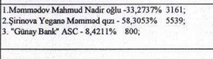 Əvvəllər "Günay Sığorta" ASC-nin nizamnamə kapitalının 67,55%-i Yeganə Şirinovaya 32,45%-i Mahmud Məmmədova məxsus idi. Beləliklə, Şirkətdə Yeganə Şirinovanın payı azalıb, Mahmud Məmmədovun payı artıb.