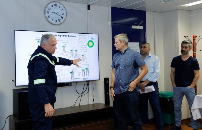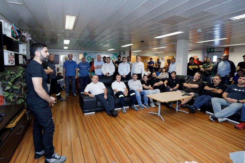 Daha sonra platformanın qaz və su vurma turbinləri, ixrac nasosları, qazma sahəsi və digər obyektlərinə tur təşkil edilib.