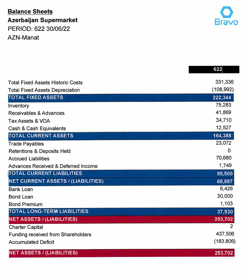 "Bravo" şəbəkəsini idarə edən "Azərbaycan Supermarket" MMC şirkəti 2022-ci ilin birinci yarısı (yanvar-iyun) üzrə maliyyə göstəricilərini açıqlayıb.