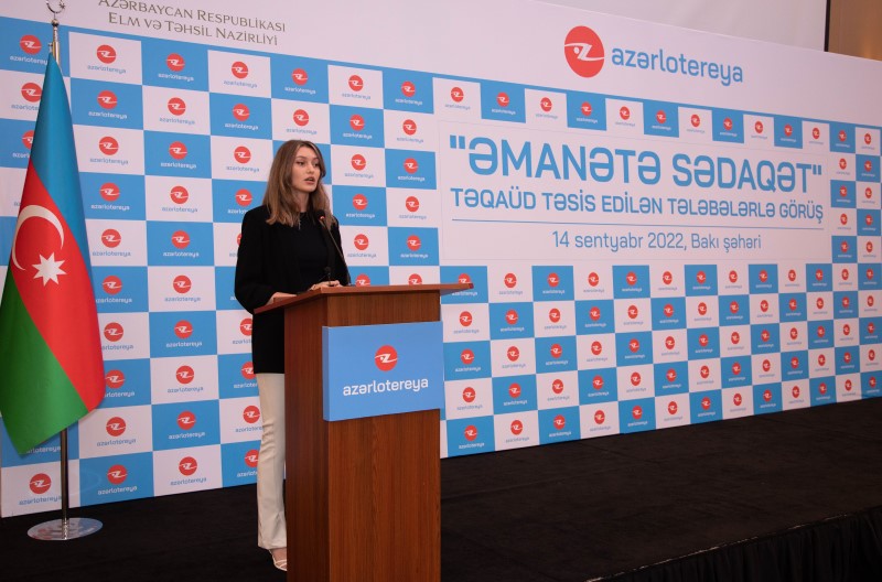 Daha sonra çıxış edən şəhid polkovnik leytenant, Vətən müharibəsi Qəhrəmanı Əfqan Əbdürrəhmanovun qızı, Azərbaycan Dillər Universitetinin tələbəsi Hilalə Əfqan təqaüd alan tələbələr adından “Azərlotereya” ASC, Elm və Təhsil Nazirliyi, həmçinin “Zəfər” Şəhid Ailələrinə Dəstək İctimai Birliyinə təşəkkür edib.