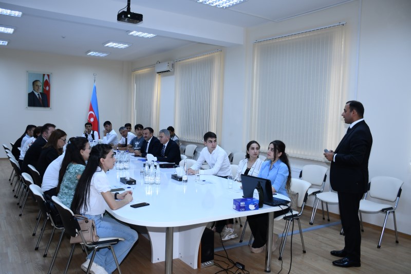 Tələbələrə ölkəmizdə fəaliyyət göstərən sənaye zonaları və aqroparklar barədə məlumat verilib, bu barədə təqdimat keçirilib, gənclərin sualları cavablandırılıb.