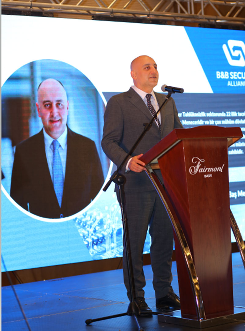 "B&B Security Alliance" şirkətinin texniki direktoru Məmməd Məmmədov qonaqlara rəqəmsal transformasiya, post – pandemiya və kiber müharibələrin kibertəhlükəsizlikdə yaratdığı yeni çağırışlar haqqında məlumat verdi. M. Məmmədov yaranan kibertəhdidlərlə mübarizədə həll yolları haqqında danışdı və "B&B Security Alliance" şirkətinin həll və xidmətlərinin çox effektiv olacağını iştirakçıların diqqətinə çatdırdı. O qeyd edib ki, şirkətin yalnız Azərbaycan bazarında deyil, eyni zamanda "Bestcomp Group" şirkətinin çoxsaylı layihələr həyata keçirdiyi qonşu ölkələrdə də xidmətlər və həllər portfeli mövcuddur: