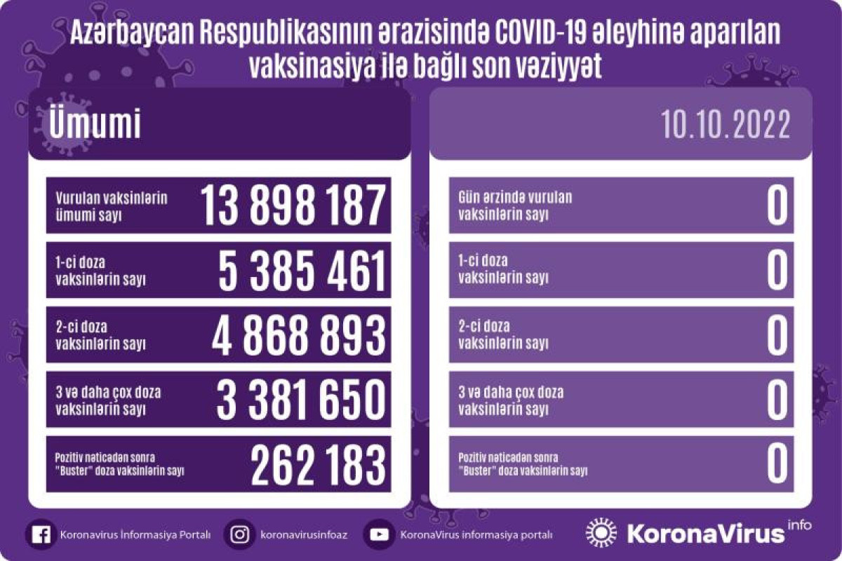 Azərbaycanda son sutkada koronavirus (COVID-19) əleyhinə vaksin vurulmayıb.