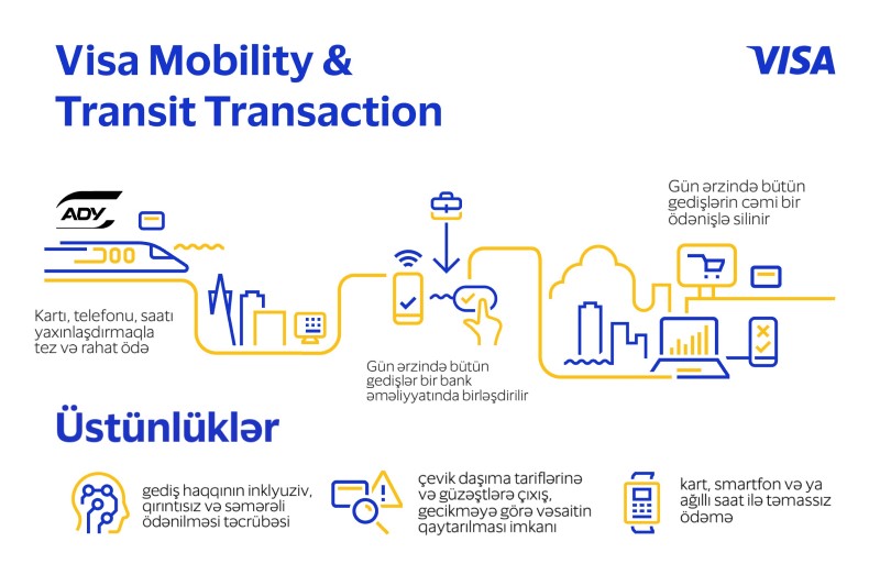Bu texnologiya sərnişinin ictimai nəqliyyatda gün ərzində etdiyi bütün gedişləri cəm etməyə və onların toplam dəyərini günün sonunda sərnişinin hesabından birdəfəlik silməyə, eləcə də təmassız ödənişləri bank kartları və ya NFC modullu cihazlar (smartfonlar və ağıllı saatlar) vasitəsilə həyata keçirməyə imkan verirVisa şirkəti Azərbaycanda ilk dəfə Mobility & Transit Transaction (MTT, “mobillik və tranzit əməliyyatları”) texnologiyasını tətbiq edəcək.