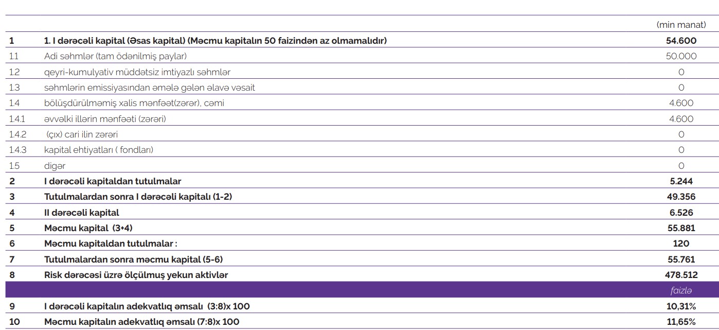 30 sentyabr 2022-ci il tarixində "Azər-Türk Bank" 55 milyon 761 min manat məcmu kapitala malik olub.
