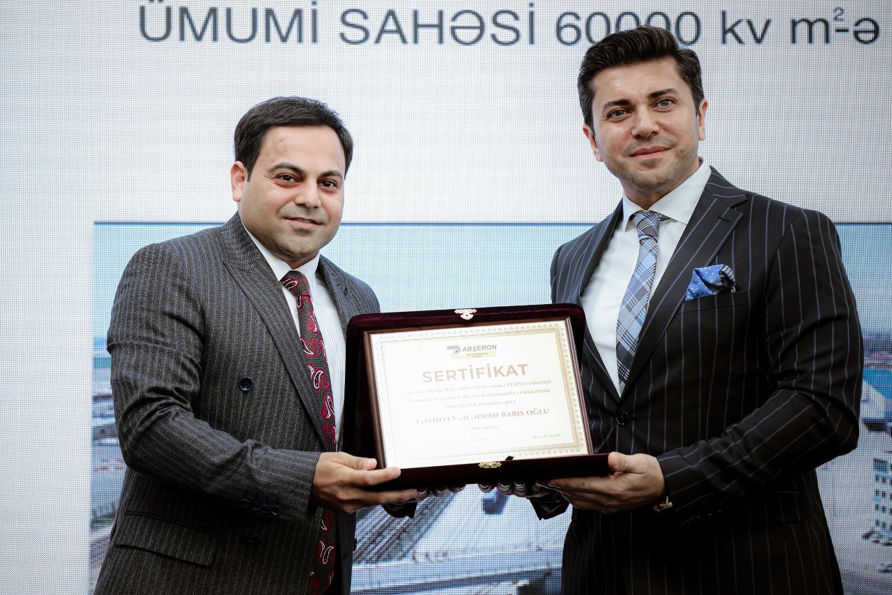 “Dövlət dəstəkli layihənin yaranmasında məqsəd Azərbaycanda fəaliyyət göstərən inşaat şirkətlərini bir yerdə toplamaq, şəhərdəki sıxlığın aradan qaldırılması və böyük müştəri kütləsini bir mərkəzdə cəmləşdirməkdir. Abşeron Tikinti Materilları Mərkəzinin layihəsi 255 ha əraziyə malik ölkənin və Cənubi Qafqazın ən böyük tikinti materialları mərkəzidir. Artıq layihənin 55 ha ərazisi tam hazırlanıb istifadəyə verilib. Burada 21 korpusdan ibarət 2 mərtəbəli tam təmirli, istilik sistemli, sanitar qovşaq, 7/24 mühafizə xidməti və optik internetlə təchiz olunmuş yerlər təqdim edir. Burada 1200-ə yaxın mağaza var. Bundan başqa mərkəzdə müxtəlif cür malları saxlama qabiliyyətinə malik böyük həcmli anbarlar və “Açıq ərazi” müştərilərin xidmətinə verilir. Anbarların ümumi sahəsi 60000 kv m2-dir. “Açıq ərazi”nin ümumi sahəsi 210000 kv m2-dir”.