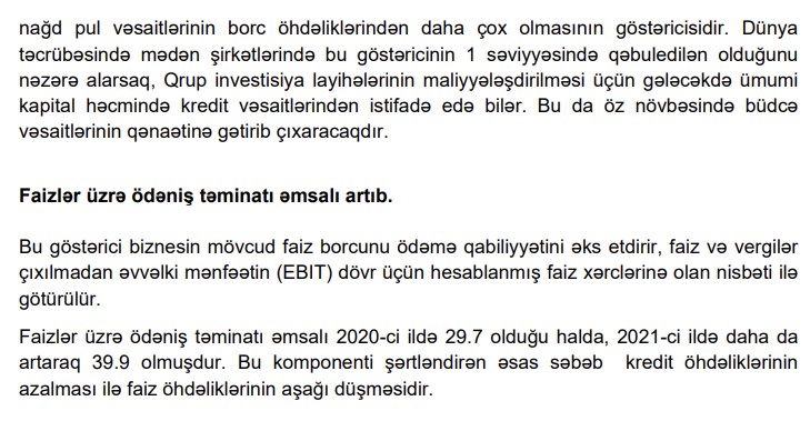 Qrupun mənfəətinin aşağı düşməsinə hazırda investisiya mərhələsində olan törəmə cəmiyyətlərin 2021-ci il üzrə 3 milyon 645 ABŞ dolları məbləğində zərərləri də təsir göstərmişdir.