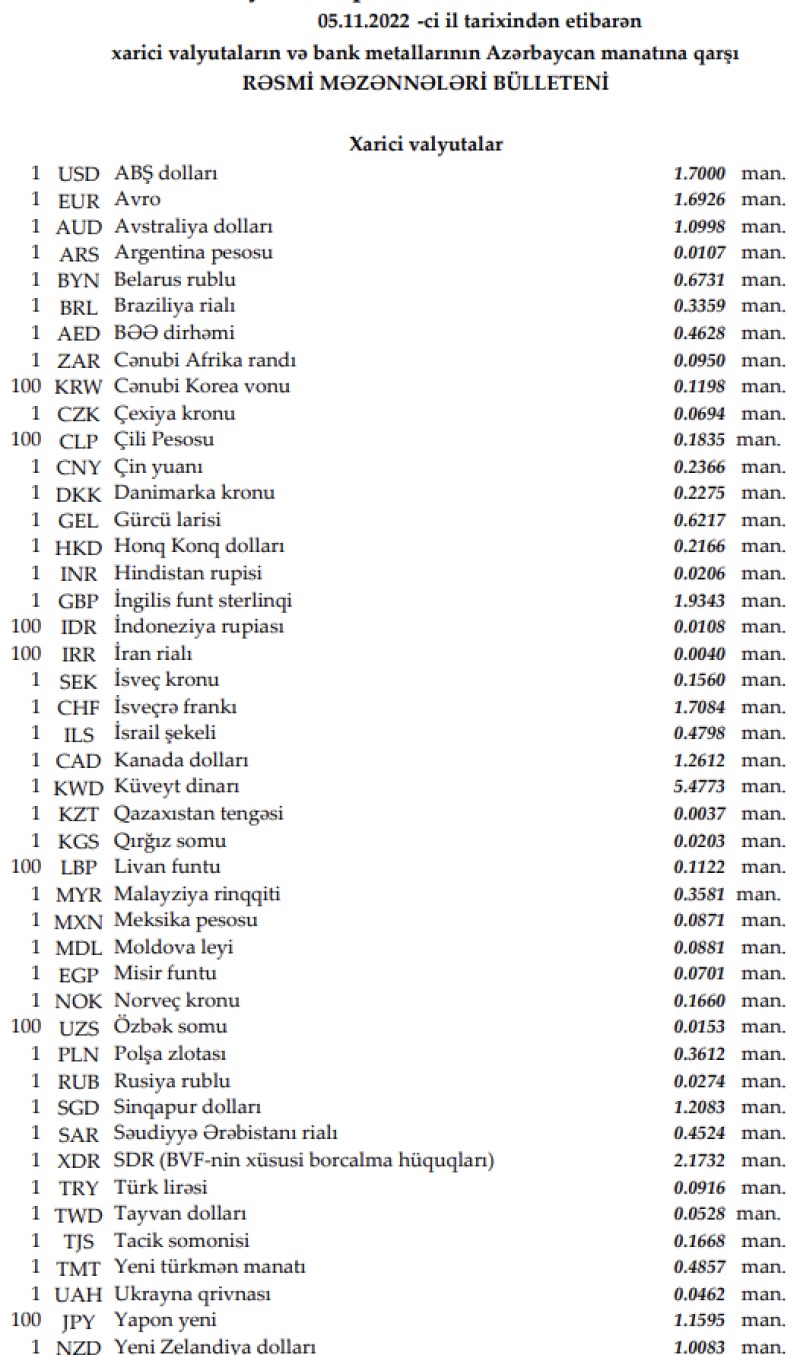 Dolların bazar ertəsi üçün rəsmi məzənnəsi müəyyən olunub