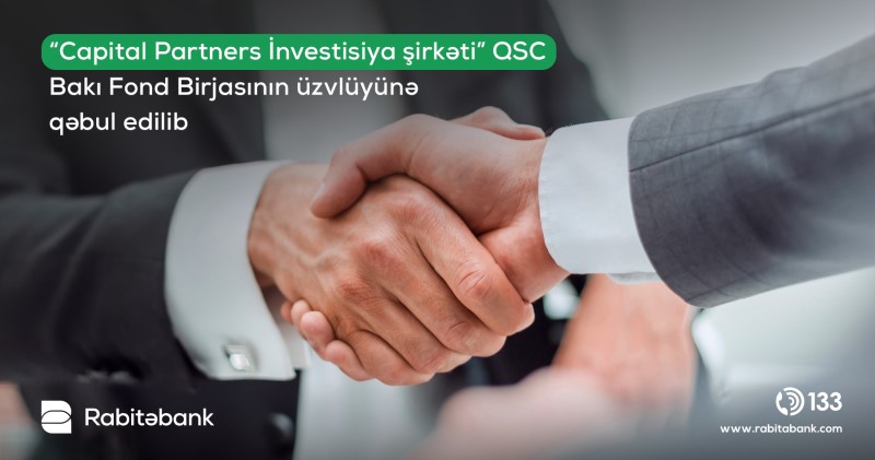 "Rabitəbank"ın yaydığı məlumatda da bildirilir ki, Bakı Fond Birjasının (BFB) Üzvlük Komissiyasının qərarlı ilə 11 noyabr 2022-ci il tarixindən etibarən "Capital Partners İnvestisiya şirkəti" QSC üzvlüyə qəbul edilib.