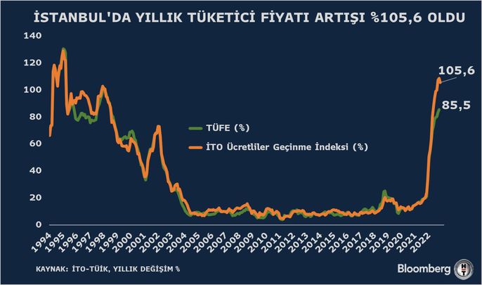 İstanbul Ticarət Palatasının (İTO) məlumatına görə, İstanbulda istehlak qiymətlərini izləyən Yaşayış Xərcləri İndeksi 2022-ci ilin noyabr ayında ötən ilin eyni ayı ilə müqayisədə 105,55% artım qeyd edib.