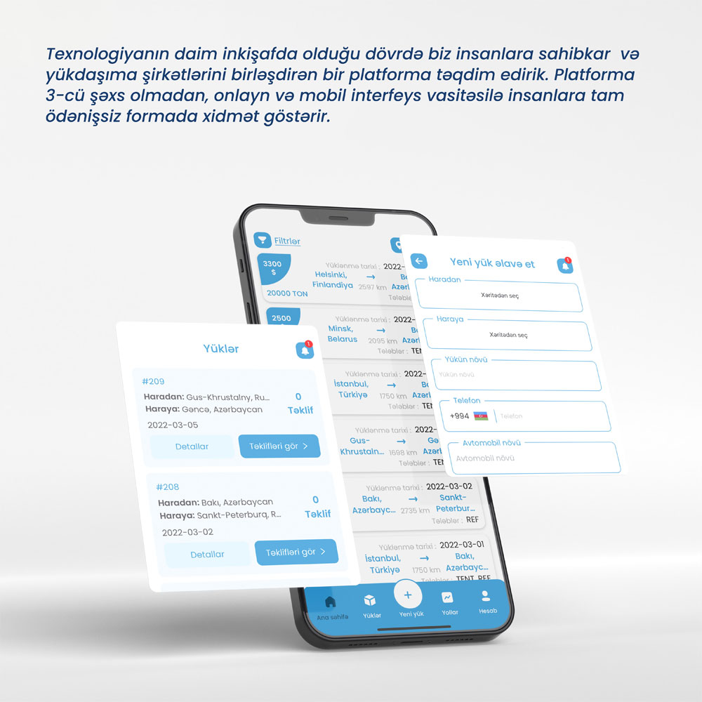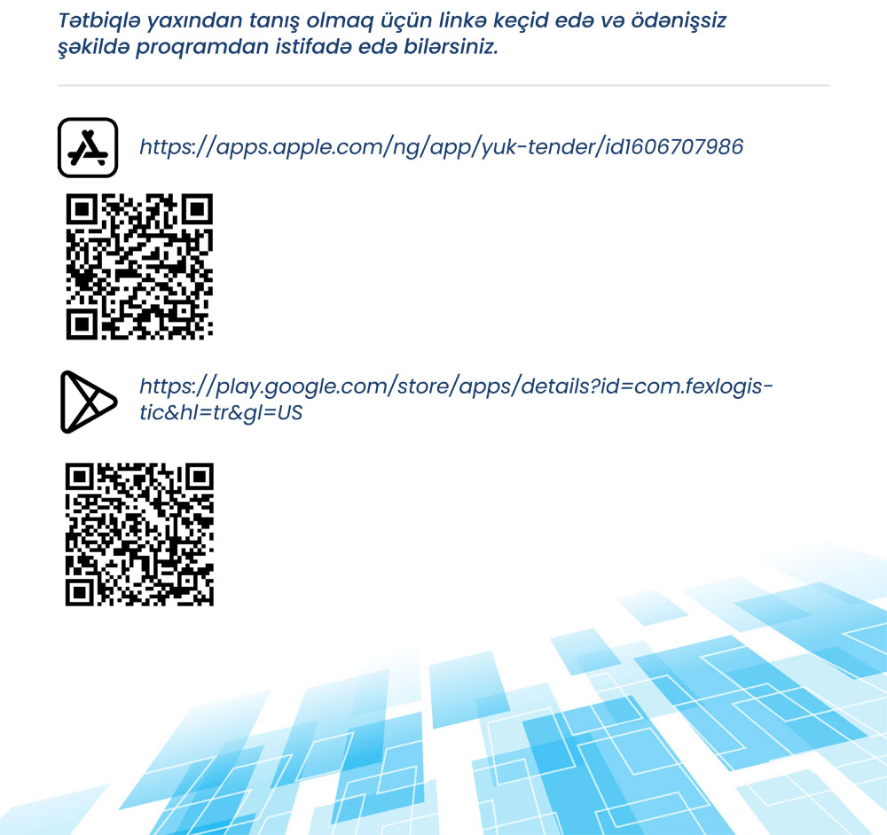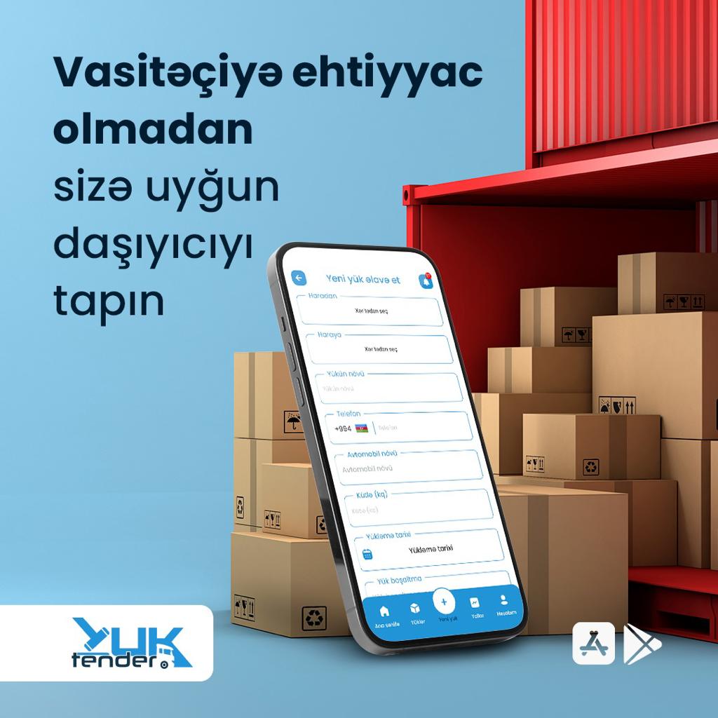 Mobil tətbiqi vasitəsilə "Yük Tender" platformasında 3-cü şəxs olmadan tam ödənişsiz formada xidmət göstərilir.