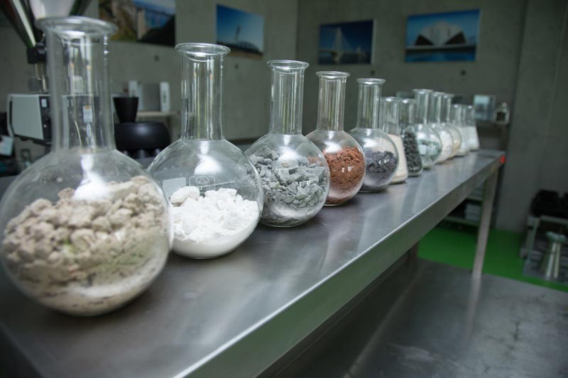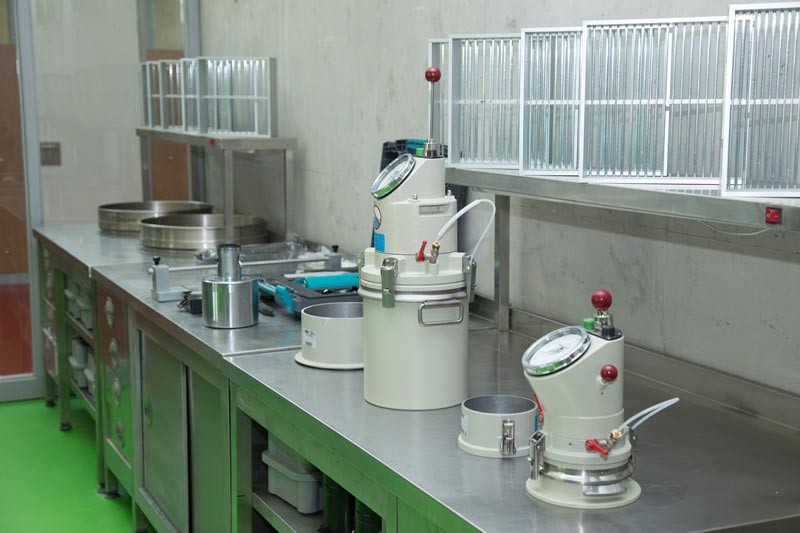 Laboratoriyada betonun tərkib elementlərinin ağırlığı, suyu özünə çəkmə xassələrini müəyyən etmək üçün sınaqlar aparılır, beton qarışığının komponentlərinin nisbəti, axıcılığı və sıxlığı tədqiq olunur, betonun həcmi çəkisi, su hopma dərəcəsi, kirlilik və nəmlik faizi, ələk analizi vasitəsilə fraksiya təyini üçün təhlilər aparılır, kub və silindr qəliblər vasitəsilə nümunələr hazırlanaraq 2,7 və 28 günlük möhkəmlik həddi təyin edilir.