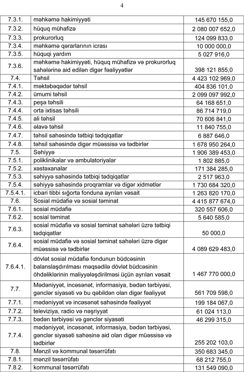 Dövlət büdcəsi kəsirinin yuxarı həddi 2 milyard 579 milyon 300 min manat məbləğindədir. Onun maliyyələşdirilməsi özəlləşdirmədən, digər mənbələrdən daxilolmalar (daxili və xarici borclanma, 2023-cü il yanvarın 1-nə dövlət büdcəsinin vahid xəzinə hesabının sərbəst qalığı) hesabına həyata keçiriləcəkdir.
