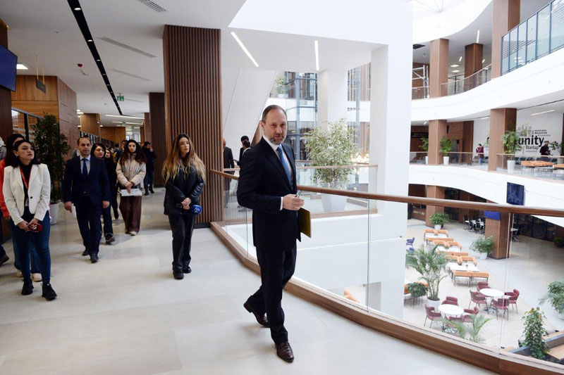KİV nümayəndələrinə məlumat verilib ki, ümumi sahəsi 11 min kvadratmetrdən çox olan “Bakı KOB evi” üç mərtəbədən ibarətdir.
