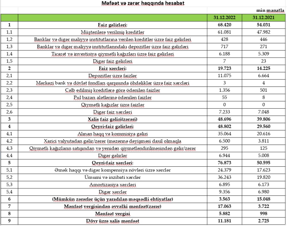 "Rabitəbank" ASC 2022-ci il üzrə maliyyə göstəricilərini açıqlayıb.
