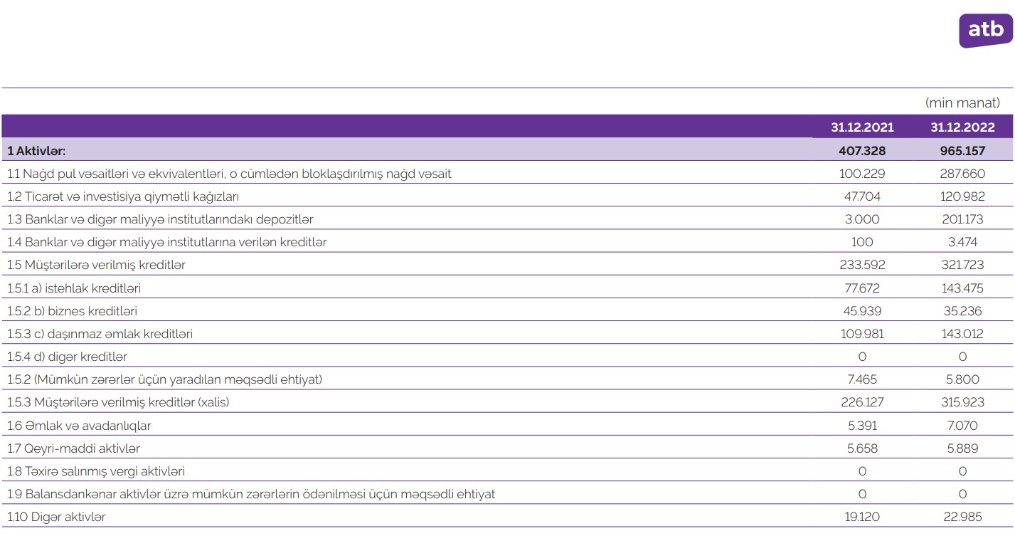 AKTİVLƏRİ 1 MİLYARD MANATA YAXINLAŞIB