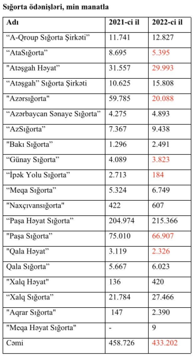 7 sığorta şirkətində geriləmə - SİYAHILAR