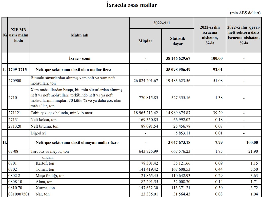 2021-ci illə müqayisədə 2022-ci ildə xam neft ixracından Azərbaycana 6 milyard 264 milyon 687 min dollar və ya 47,4% çox olmaqla 19 milyard 483 milyon 623 min dollar (33,1 milyard manat) daxil olub.