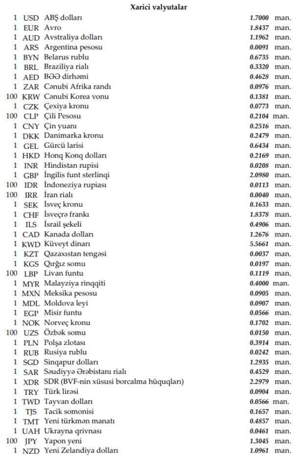 Dolların bazar ertəsi üçün rəsmi məzənnəsi müəyyən olunub